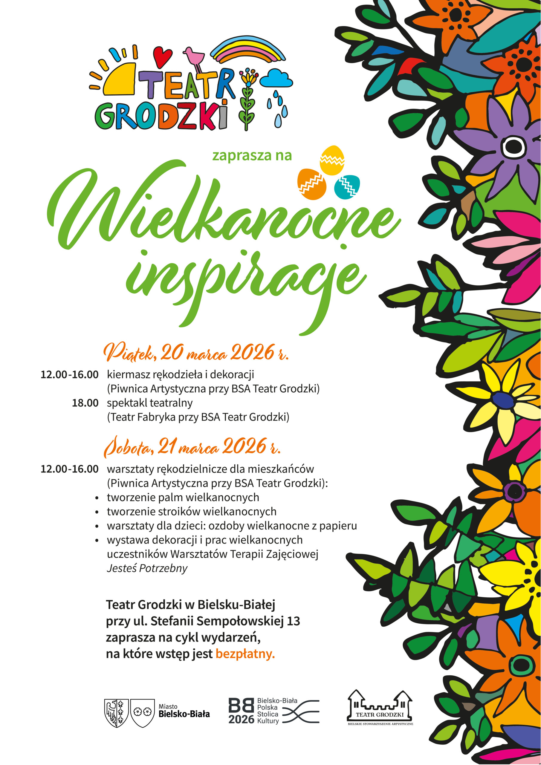 Zapraszamy serdecznie na Wielkanocne Inspiracje w Bielskie Stowarzyszenie Artystyczne „Teatr Grodzki” – dwa dni pełne koloru, rękodzieła, świątecznych dekoracji i twórczej energii!